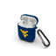 Protect your Apple AirPods in style with the NCAA Collegiate AirPod Case, featuring your favorite team's official logo. This slim, form-fitting case provides a nonslip grip and includes a removable mini-carabiner for secure storage on the go. Show off your team spirit while keeping your AirPods safe and easily accessible. Perfect for sports fans, this case is a must-have accessory!