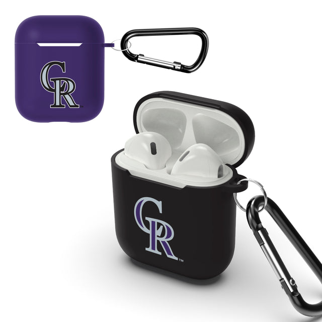 Protect your earbuds in style with a shockproof earbud carrying case. Strong TPU material sits snugly on the case protecting it from scratches. Featuring Colorado Rockies logos, show your pride on the go. Just clip on with the included mini-carabiner. Includes MLB two cases. Earbuds and charging case not included.