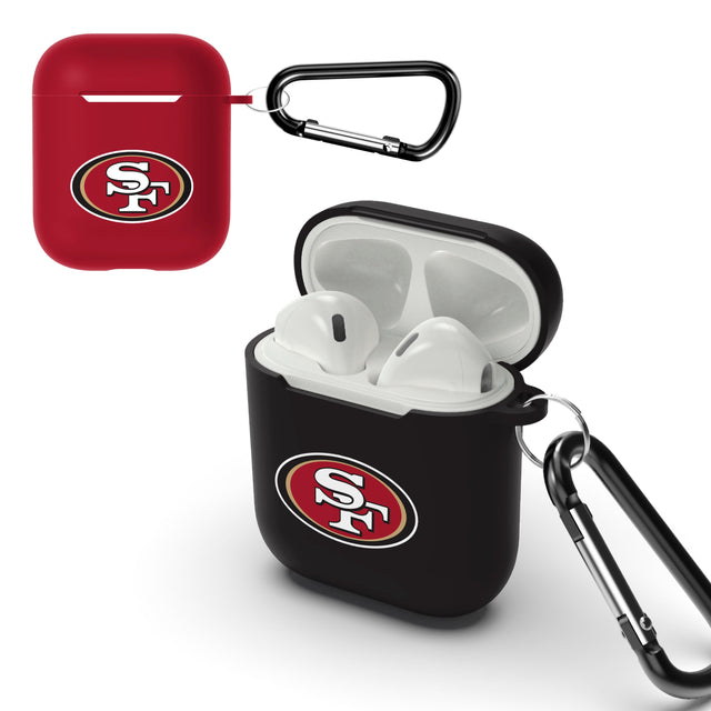 Protect your earbuds in style with a shockproof earbud carrying case. Strong TPU material sits snugly on the case protecting it from scratches. Featuring San Fransisco 49ers logos, show your pride on the go. Just clip on with the included mini-carabiner. Includes NFL two cases. Earbuds and charging case not included.