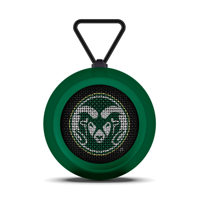 Stay connected and show your team spirit with the NCAA Magnetic Bluetooth Speaker featuring Colorado State Rams logo! Its magnetic mount securely attaches to your golf cart, refrigerator, metal desk frame, or any other magnetic surface. Sync two speakers together for a true surround sound experience. With shockproof durability, IPX4 water resistance, and a 30 ft wireless range, it’s built for both indoor and outdoor adventures. Universally compatible with all Bluetooth-enabled devices, it also features FM radio and comes with a USB-C charging cable and carabiner clip for added convenience.
