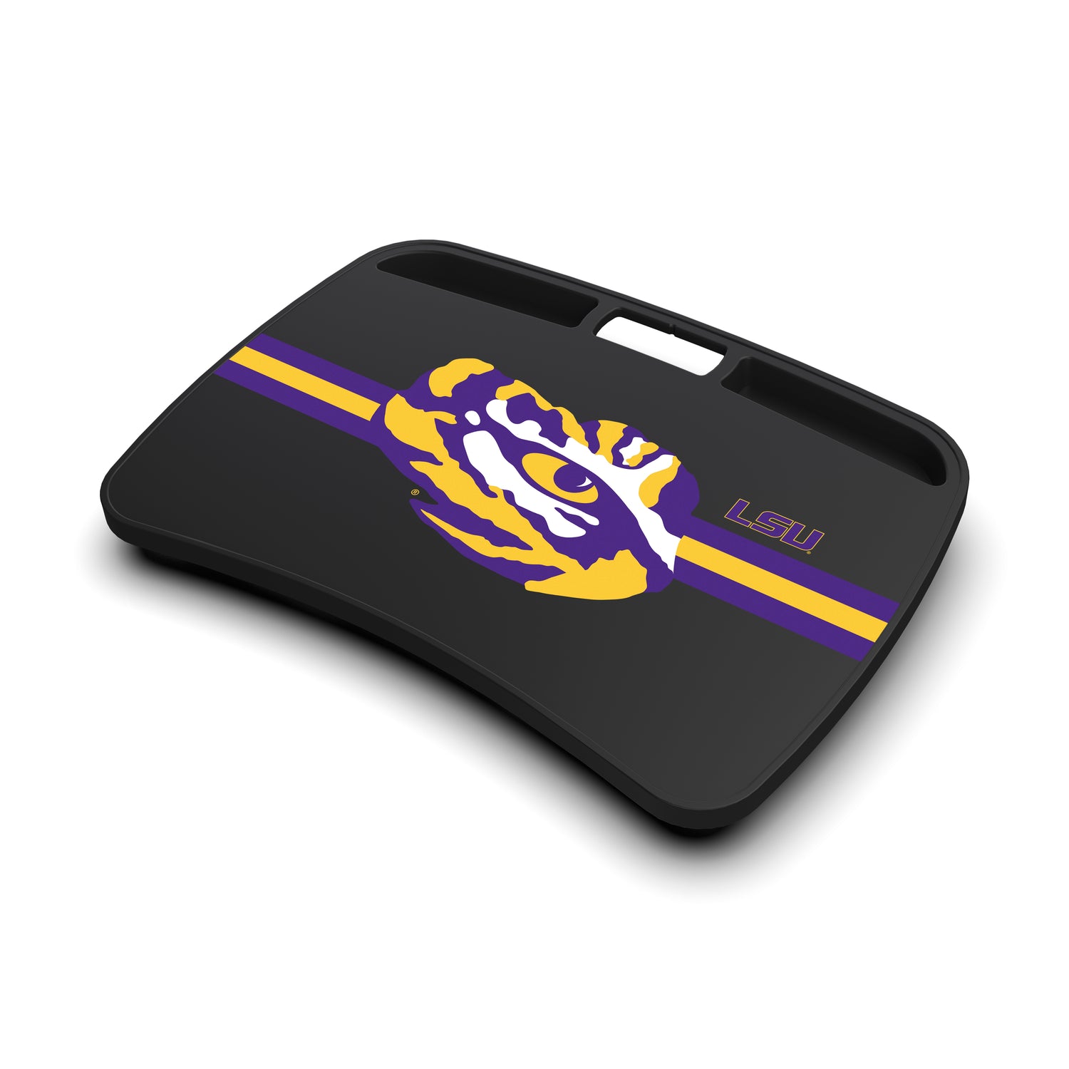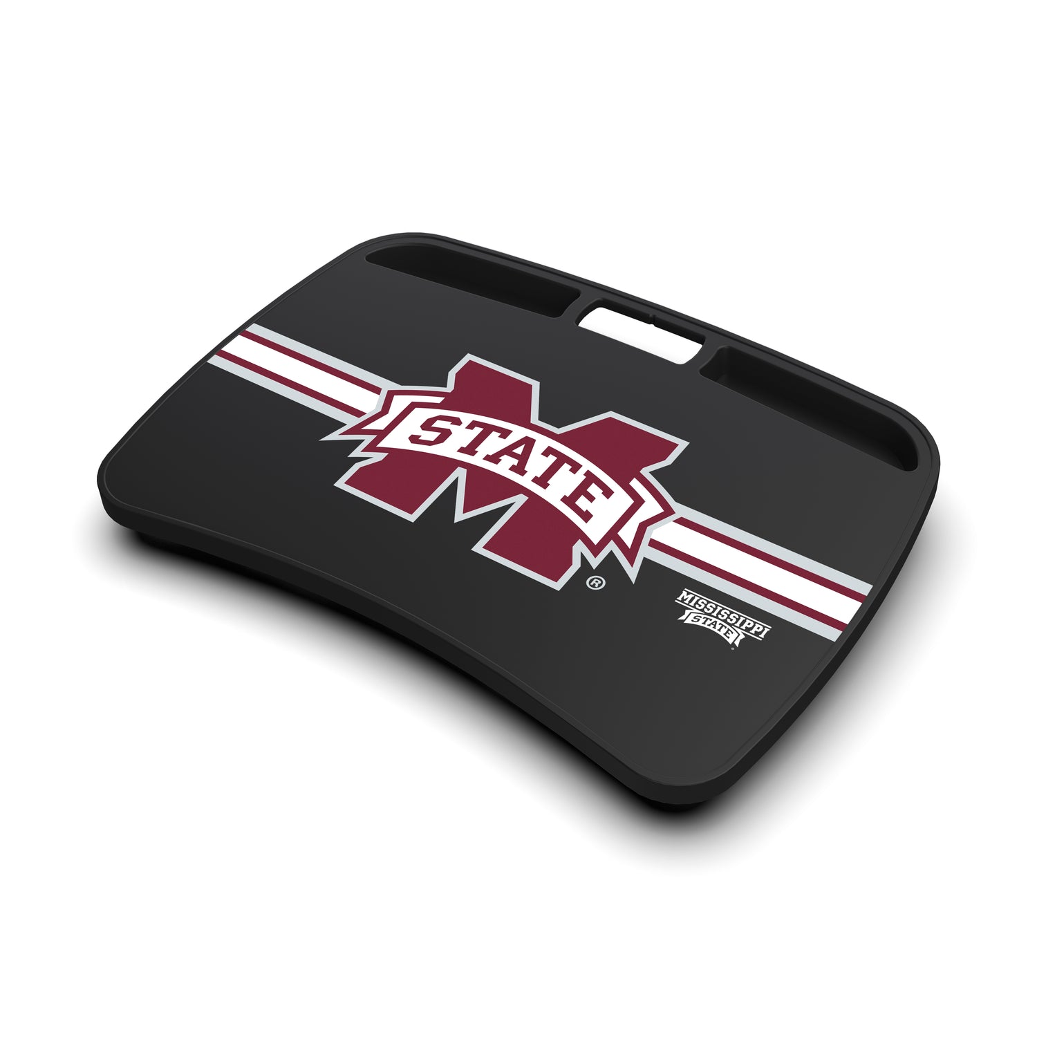 Upgrade your workspace or game day setup with the NCAA Lap Desk featuring your favorite team logo! Designed for comfort and convenience, it offers a smooth guide surface perfect for writing, working, or gaming. The memory foam backing provides added comfort, while the built-in phone compartment and travel handle make it practical for use anywhere.