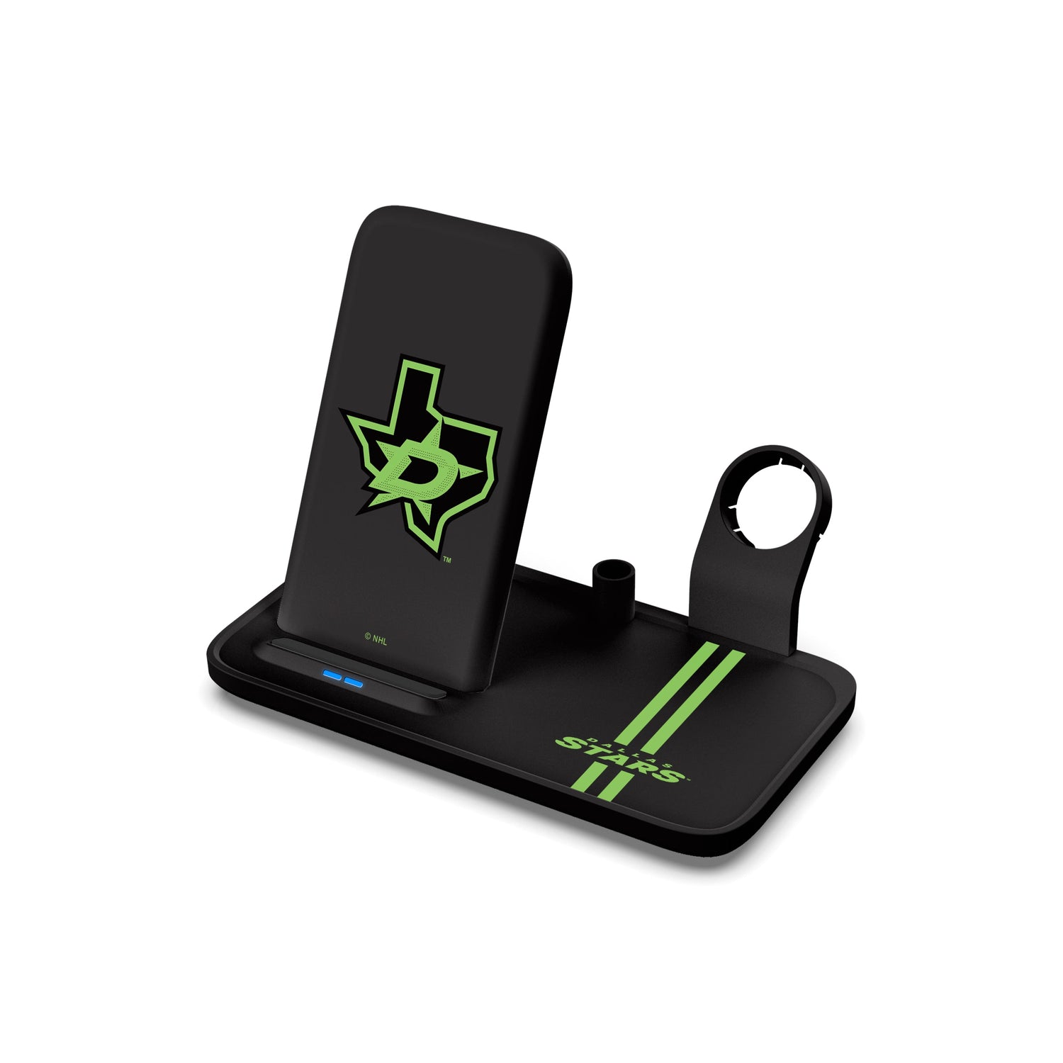 The NHL Wireless Charging Station is a perfect blend of style and functionality, designed to charge multiple devices simultaneously. Featuring your favorite NHL Dallas Stars logo, this sleek and compact station supports all Qi-enabled devices. Ideal for home or office use, it keeps your workspace organized while showcasing your team's pride.