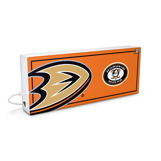 Illuminate your space in style with the NHL LED Ambience Light Box. Measuring 11.8”x4.8”, this lightbox provides ample ambient lighting for sports fans, making it perfect for any room, bar, or office. With both USB-C and battery power options, you can enjoy flexible use at home or on the go. Its wall-mountable design lets you easily personalize your space, while energy-efficient LED technology brightens your surroundings with minimal energy use. Featuring Anaheim Ducks logo, this officially licensed NHL product proudly displays your team spirit for all to see.