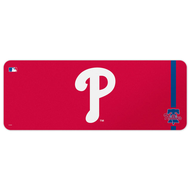 Transform your workspace with the MLB Performance Desk Mat featuring Philadelphia Phillies logo! This extra-large mat is designed to protect and enhance your entire work area, easily accommodating your laptop, keyboard, and mouse. The soft glide fabric ensures precise mouse control, while the non-slip rubber backing provides a firm grip. Built for durability with nylon stitching and a water-resistant surface, this officially licensed desk mat adds team spirit to any office space. Perfect for fans who want to show their pride while staying productive!