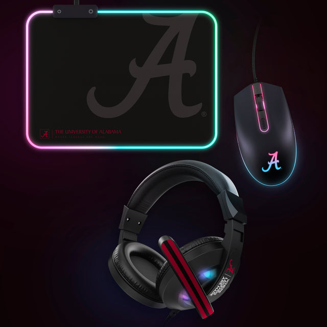 Get ready for an epic gaming experience with the NCAA Gridiron Battle Box! This exclusive combo gift pack includes a precision wired mouse, high-quality gaming headphones, and an RGB LED gaming mousepad, all designed to elevate your gameplay. Featuring Alabama Crimson Tide logo, this limited-edition set showcases your team spirit while providing top-notch gaming gear. Don’t miss out on this incredible deal—limited stock available at 50% off!