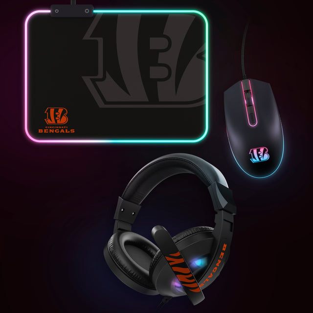Get ready for an epic gaming experience with the NFL Gridiron Battle Box! This exclusive combo gift pack includes a precision wired mouse, high-quality gaming headphones, and an RGB LED gaming mousepad, all designed to elevate your gameplay. Featuring Cincinnati Bengals logo, this limited-edition set showcases your team spirit while providing top-notch gaming gear. Don’t miss out on this incredible deal—limited stock available at 50% off!
