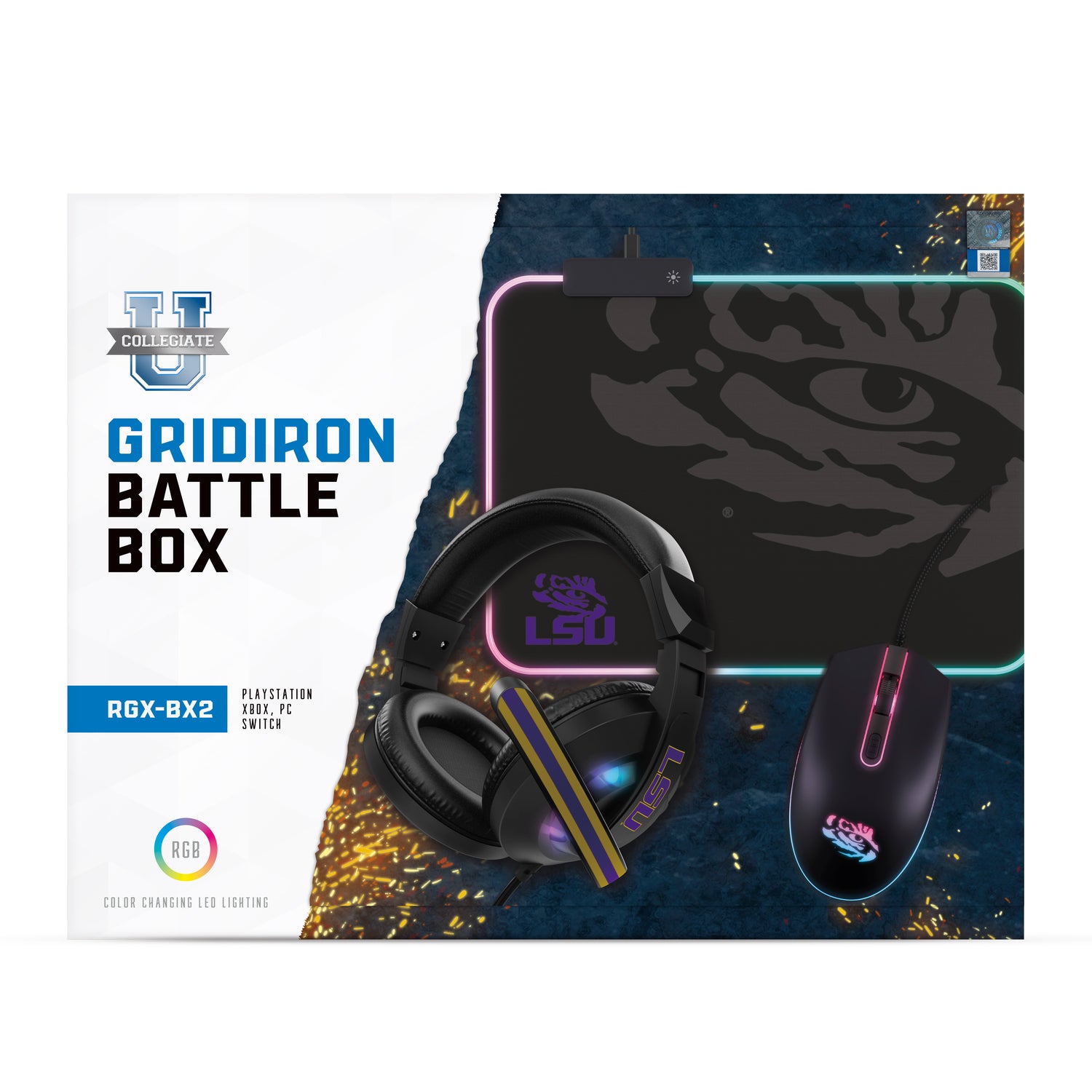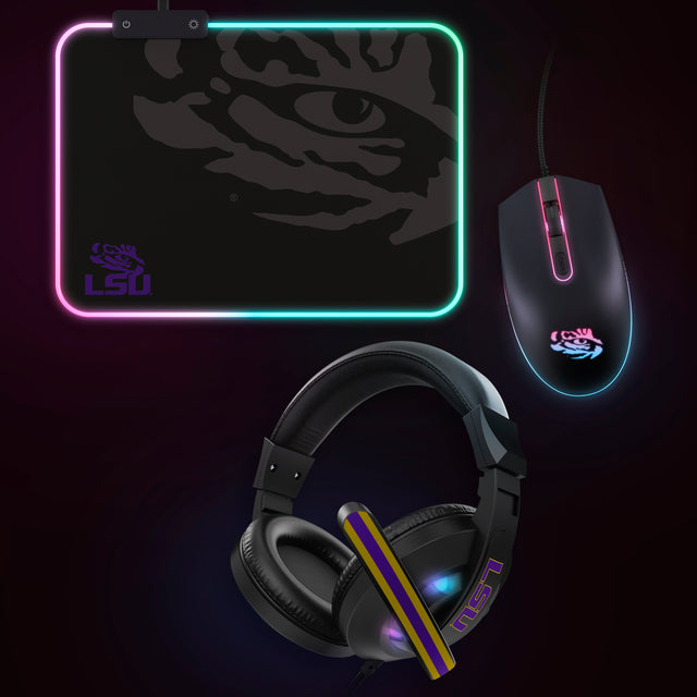 Get ready for an epic gaming experience with the NCAA Gridiron Battle Box! This exclusive combo gift pack includes a precision wired mouse, high-quality gaming headphones, and an RGB LED gaming mousepad, all designed to elevate your gameplay. Featuring LSU Tigers logo, this limited-edition set showcases your team spirit while providing top-notch gaming gear. Don’t miss out on this incredible deal—limited stock available at 50% off!