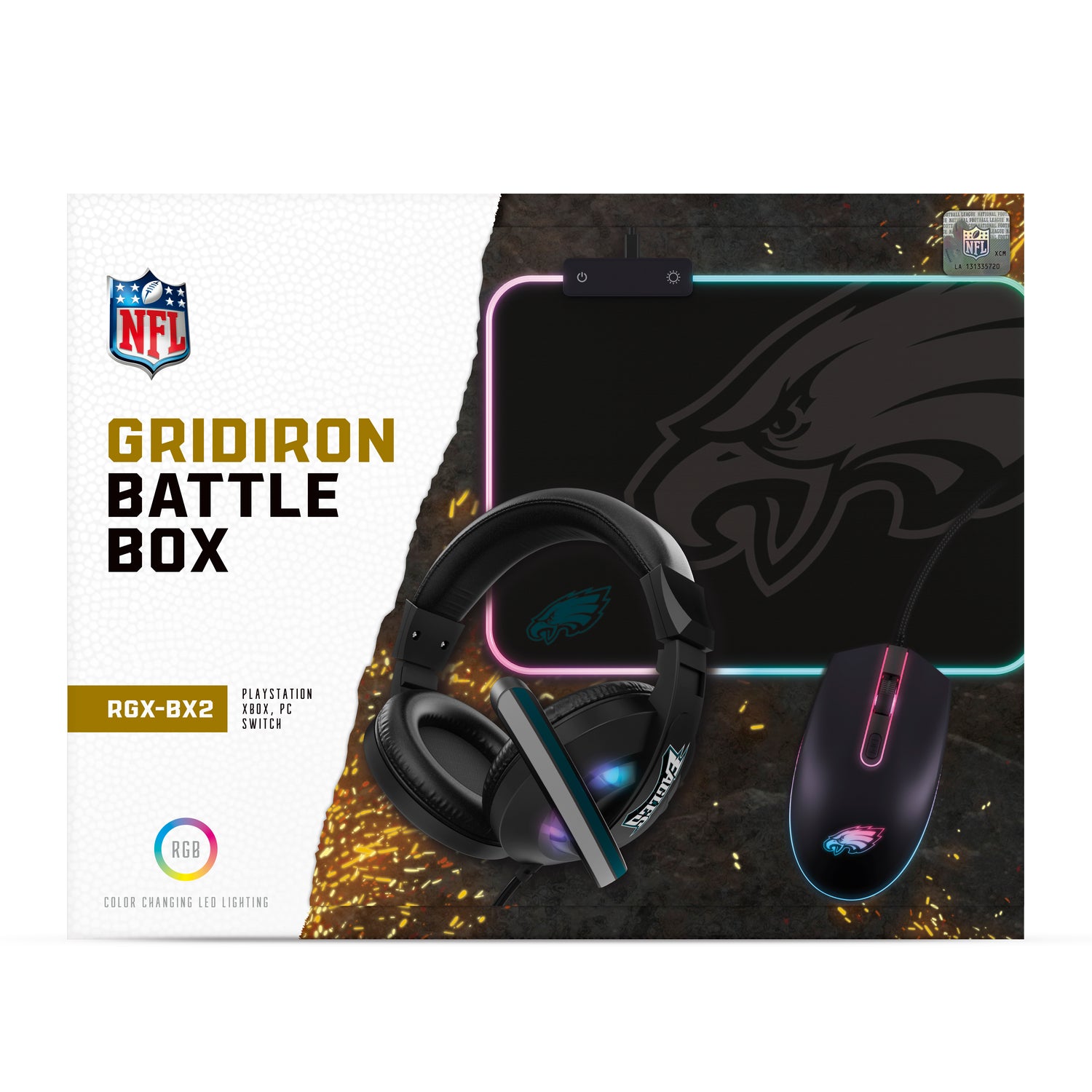 Get ready for an epic gaming experience with the NFL Gridiron Battle Box! This exclusive combo gift pack includes a precision wired mouse, high-quality gaming headphones, and an RGB LED gaming mousepad, all designed to elevate your gameplay. Featuring Philadelphia Eagles logo, this limited-edition set showcases your team spirit while providing top-notch gaming gear. Don’t miss out on this incredible deal—limited stock available at 50% off!