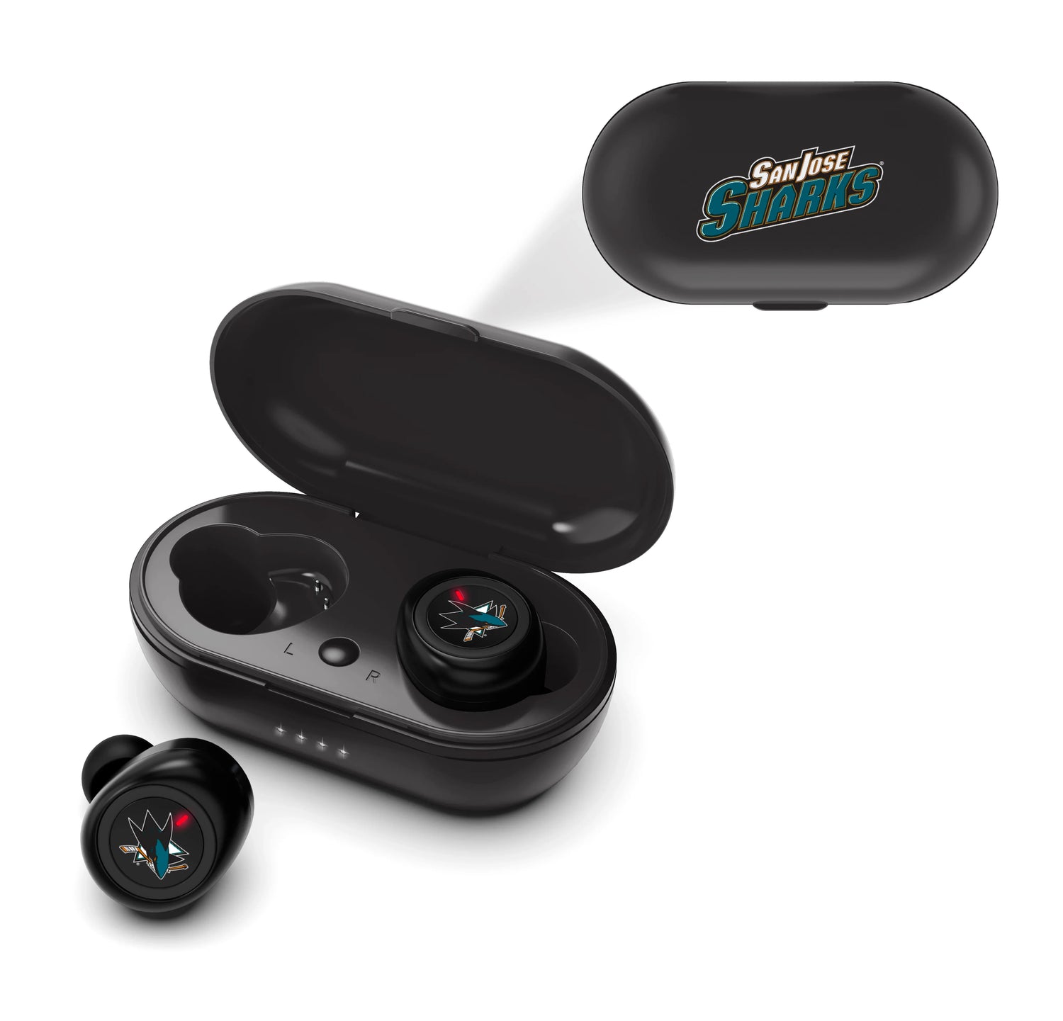 Experience the ultimate in audio convenience with the NHL True Wireless Earbuds! Perfect for football fans, these Bluetooth earbuds effortlessly connect to your smartphone or other devices, allowing you to enjoy your favorite tunes or take calls hands-free. Featuring San Jose Sharks logo, The portable charging case provides up to two full charges, ensuring you stay powered up on the go. With over 10 hours of music and talk time, premium stereo sound, and official NFL licensing, these earbuds combine functionality with team spirit. Enjoy crystal-clear sound without the hassle of wires grab yours today and show your team pride!