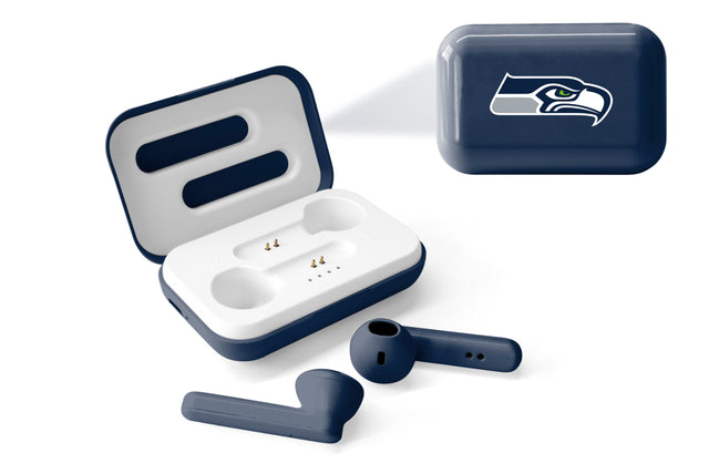 Take your team spirit anywhere with the NFL True Wireless Earbuds featuring Seattle Seahawks logo! Enjoy premium stereo sound and Bluetooth 5.0 technology for seamless connectivity with all Bluetooth-enabled devices. With a 10 ft. range, these earbuds let you listen to music, and audiobooks, or answer calls effortlessly. Get 3-4 hours of playtime per charge and stay powered up with the portable charging case. Perfect for fans on the go, these officially licensed earbuds combine style, functionality, and team pride.