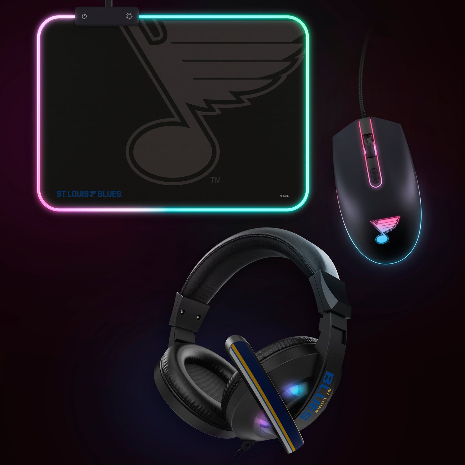 Get ready for an epic gaming experience with the NHL Gridiron Battle Box! This exclusive combo gift pack includes a precision wired mouse, high-quality gaming headphones, and an RGB LED gaming mousepad, all designed to elevate your gameplay. Featuring St. Louis Blues logo, this limited-edition set showcases your team spirit while providing top-notch gaming gear. Don’t miss out on this incredible deal—limited stock available at 50% off!