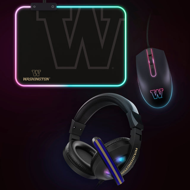 Get ready for an epic gaming experience with the NCAA Gridiron Battle Box! This exclusive combo gift pack includes a precision wired mouse, high-quality gaming headphones, and an RGB LED gaming mousepad, all designed to elevate your gameplay. Featuring Washington Huskies logo, this limited-edition set showcases your team spirit while providing top-notch gaming gear. Don’t miss out on this incredible deal—limited stock available at 50% off!