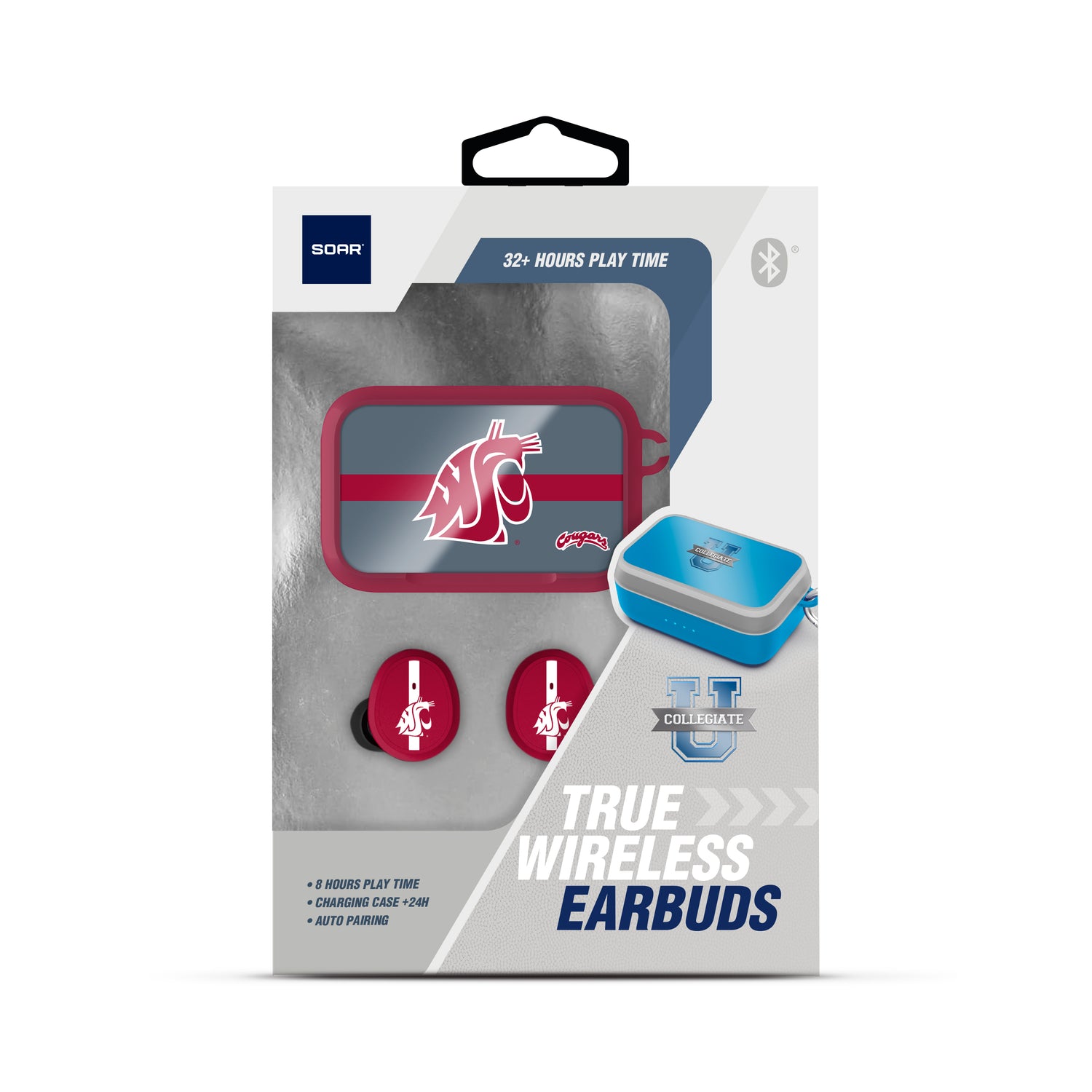 The SOAR NCAA Wireless Sports Earbuds offer a comfortable fit with the convenience of wireless freedom. These earbuds are perfect for active lifestyles, featuring a secure fit for any workout or outdoor activity. With seamless Bluetooth connectivity, enjoy high-quality sound while displaying your favorite Washington State Cougars team logo. The compact charging case ensures your earbuds are always ready to go, providing hours of listening on a single charge. Ideal for sports enthusiasts and NCAA fans alike, these earbuds combine style, functionality, and team pride.