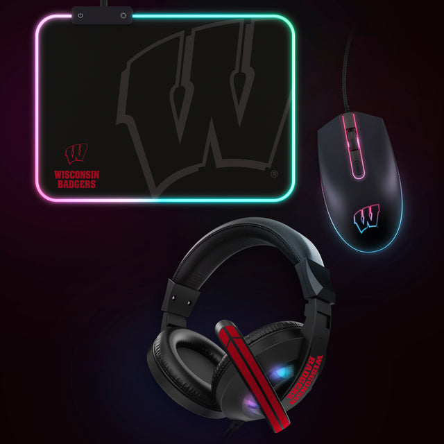 Get ready for an epic gaming experience with the NCAA Gridiron Battle Box! This exclusive combo gift pack includes a precision wired mouse, high-quality gaming headphones, and an RGB LED gaming mousepad, all designed to elevate your gameplay. Featuring Wisconsin Badgers logo, this limited-edition set showcases your team spirit while providing top-notch gaming gear. Don’t miss out on this incredible deal—limited stock available at 50% off!