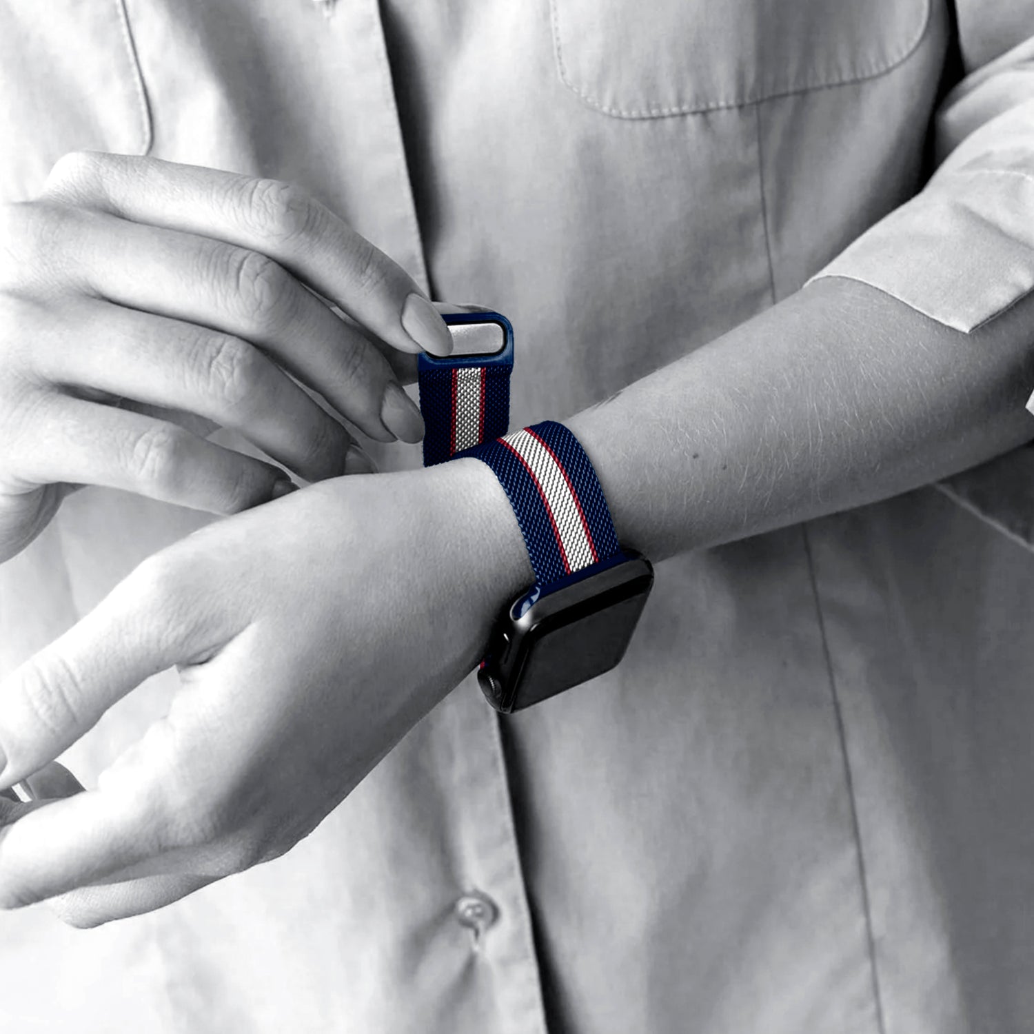 Support your team in style with the NFL Striped Metallic Watch Band (42mm), featuring Houston Texans logo. Designed with a durable stainless steel band, it offers a secure magnetic closure and a sleek striped look. Compatible with Apple Watches, its adjustable one-size-fits-most design ensures maximum comfort. Perfect for everyday wear or game-day vibes!