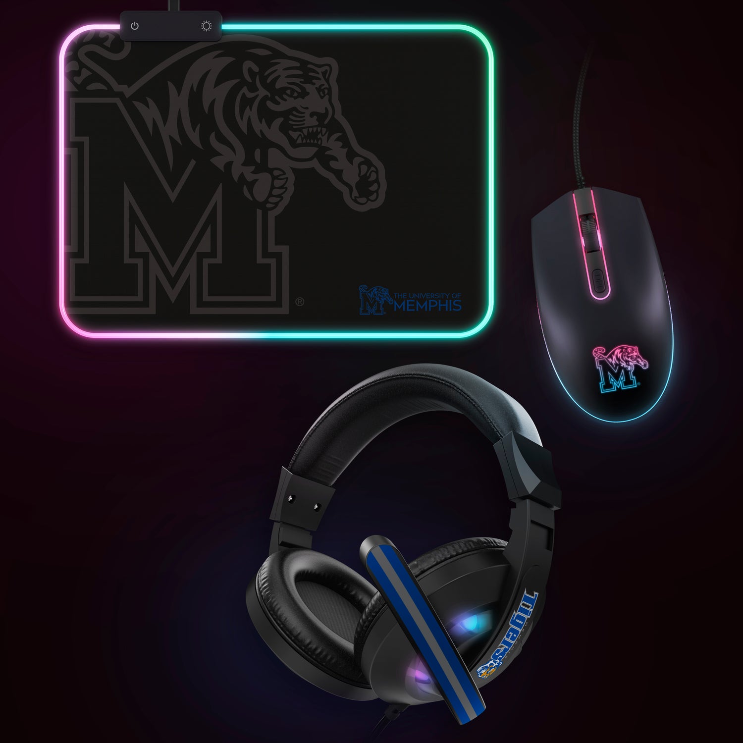 Get ready for an epic gaming experience with the NCAA Gridiron Battle Box! This exclusive combo gift pack includes a precision wired mouse, high-quality gaming headphones, and an RGB LED gaming mousepad, all designed to elevate your gameplay. Featuring Memphis Tigers logo, this limited-edition set showcases your team spirit while providing top-notch gaming gear. Don’t miss out on this incredible deal—limited stock available at 50% off!