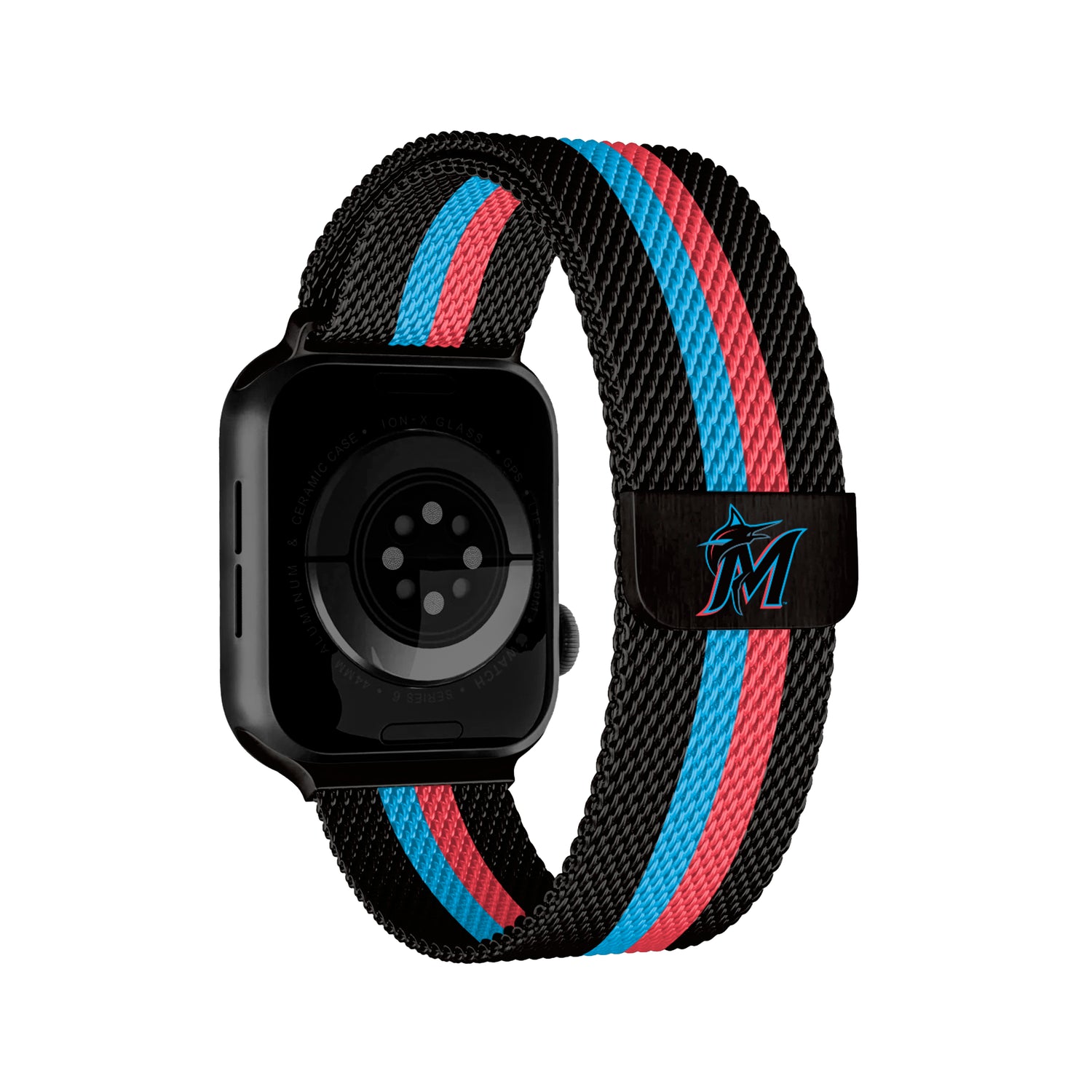 Miami Marlins MLB Striped Metallic Watch Band (38mm)