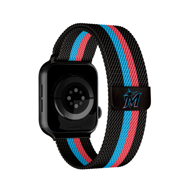 Miami Marlins MLB Striped Metallic Watch Band (42mm)