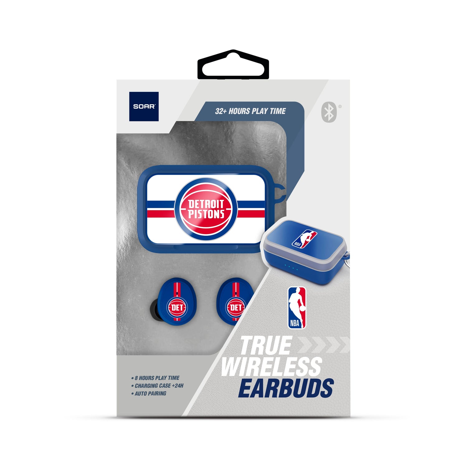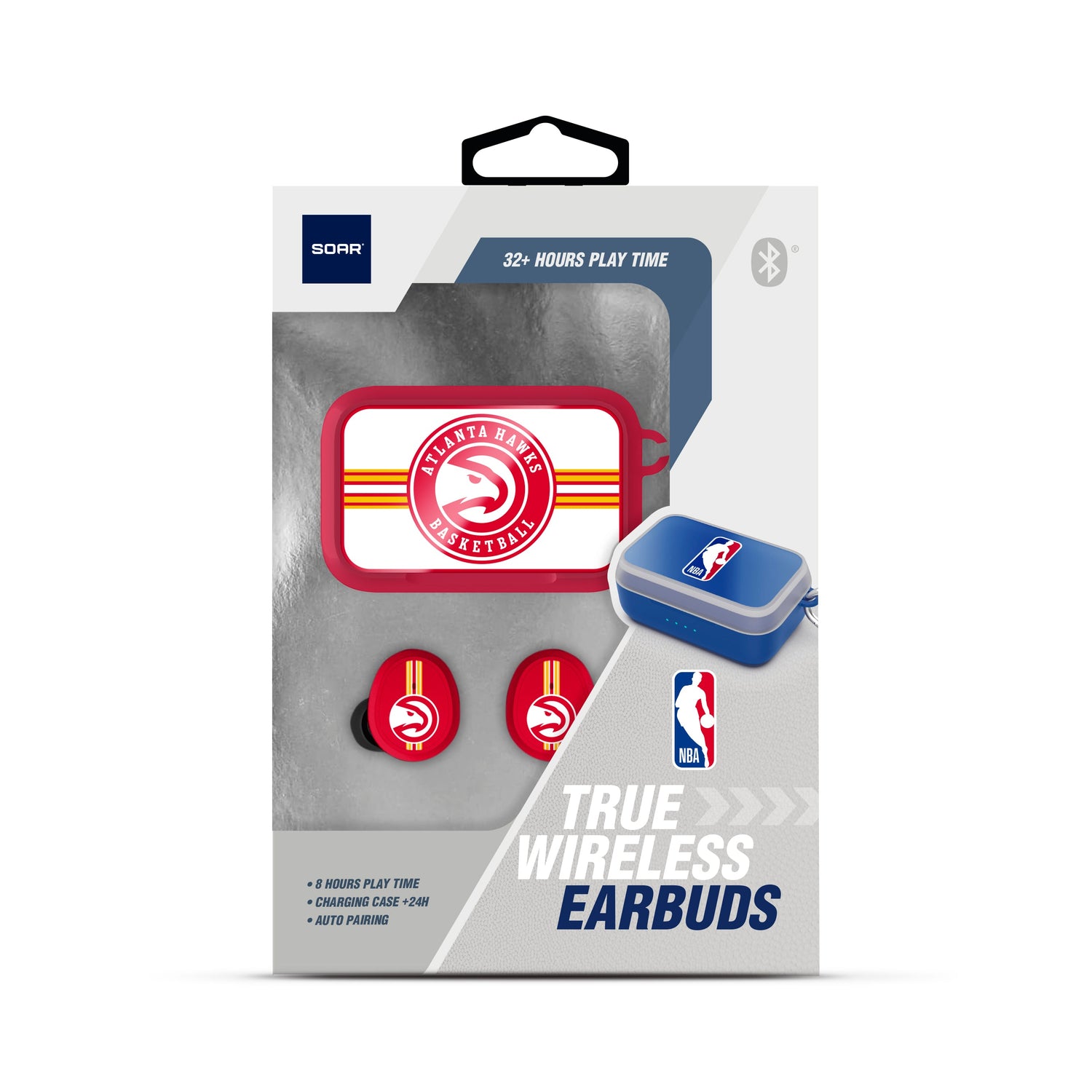 The SOAR NBA Wireless Sports Earbuds offer a comfortable fit with the convenience of wireless freedom. These earbuds are perfect for active lifestyles, featuring a secure fit for any workout or outdoor activity. With seamless Bluetooth connectivity, enjoy high-quality sound while displaying your favorite NBA teams logo. The compact charging case ensures your earbuds are always ready to go, providing hours of listening on a single charge. Ideal for sports enthusiasts and NBA fans alike, these earbuds combine style, functionality, and team pride.
