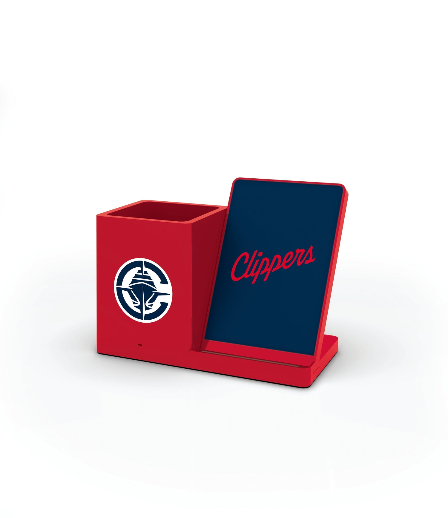 The NBA Cell Phone Wireless Charging Stand and Desktop Organizer, featuring your favorite team's official logo, combines efficient wireless charging with practical organization. This sleek stand offers fast and efficient 10W wireless charging for all your Qi-compatible devices, ensuring your phone, earbuds, and other gadgets are powered up quickly and clutter-free. With the integrated desktop organizer, you can keep your workspace tidy by storing essential items like pens, notepads, or office supplies while showcasing your team pride. Officially licensed and designed for ultimate fan support, it’s a functional and stylish addition to any home or office setup.