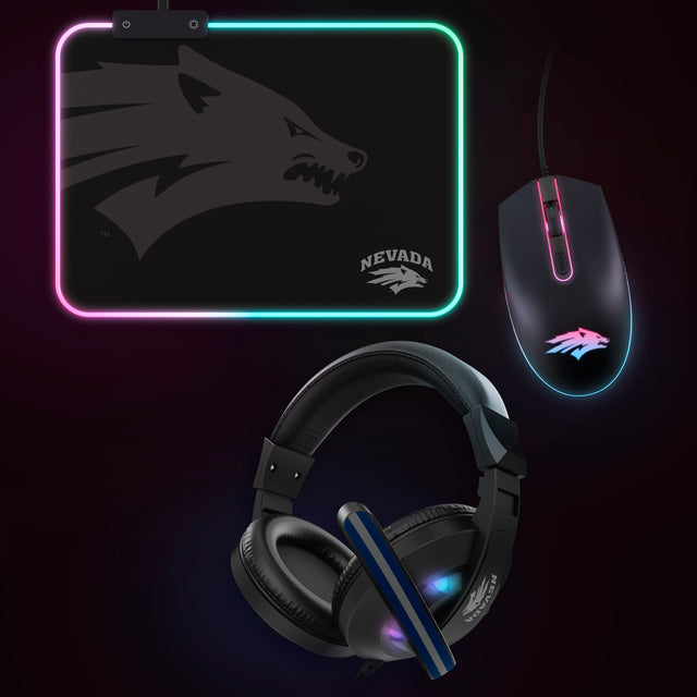 Get ready for an epic gaming experience with the NCAA Gridiron Battle Box! This exclusive combo gift pack includes a precision wired mouse, high-quality gaming headphones, and an RGB LED gaming mousepad, all designed to elevate your gameplay. Featuring Nevada Wolf Pack logo, this limited-edition set showcases your team spirit while providing top-notch gaming gear. Don’t miss out on this incredible deal—limited stock available at 50% off!