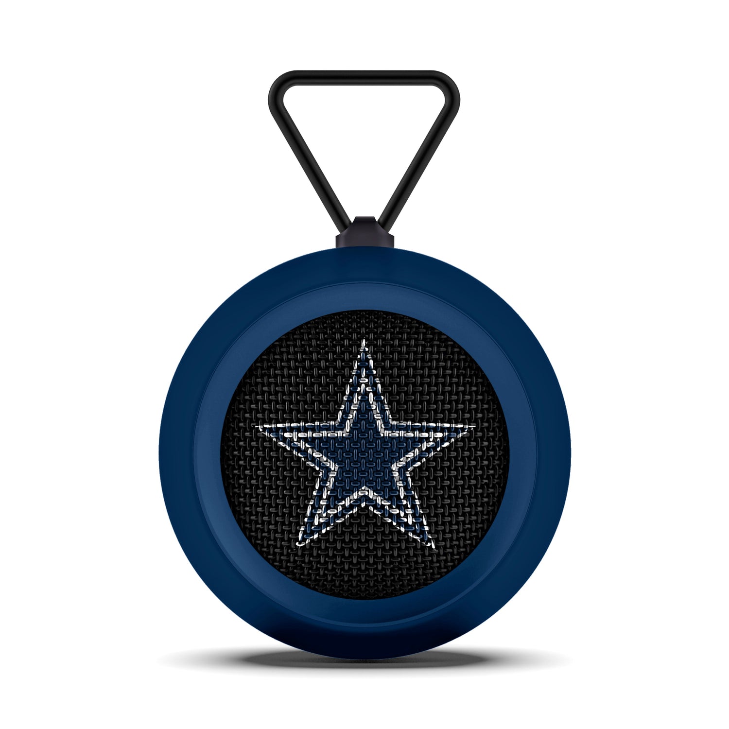 Stay connected and show your team spirit with the NFL Magnetic Bluetooth Speaker featuring Dallas Cowboys logo! Its magnetic mount securely attaches to your golf cart, refrigerator, metal desk frame, or any other magnetic surface. Sync two speakers together for a true surround sound experience. With shockproof durability, IPX4 water resistance, and a 30 ft wireless range, it’s built for both indoor and outdoor adventures. Universally compatible with all Bluetooth-enabled devices, it also features FM radio and comes with a USB-C charging cable and carabiner clip for added convenience.