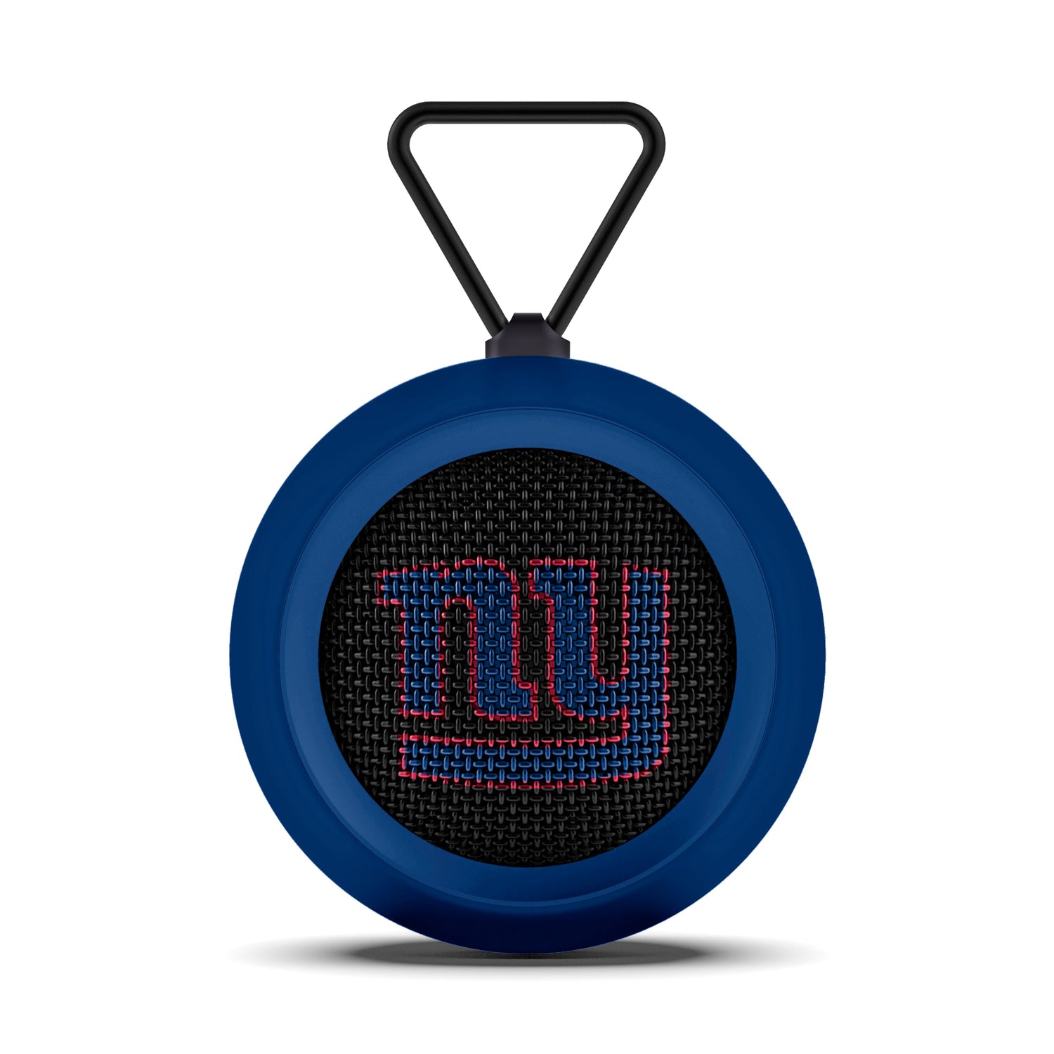 Stay connected and show your team spirit with the NFL Magnetic Bluetooth Speaker featuring New York Giants logo! Its magnetic mount securely attaches to your golf cart, refrigerator, metal desk frame, or any other magnetic surface. Sync two speakers together for a true surround sound experience. With shockproof durability, IPX4 water resistance, and a 30 ft wireless range, it’s built for both indoor and outdoor adventures. Universally compatible with all Bluetooth-enabled devices, it also features FM radio and comes with a USB-C charging cable and carabiner clip for added convenience.