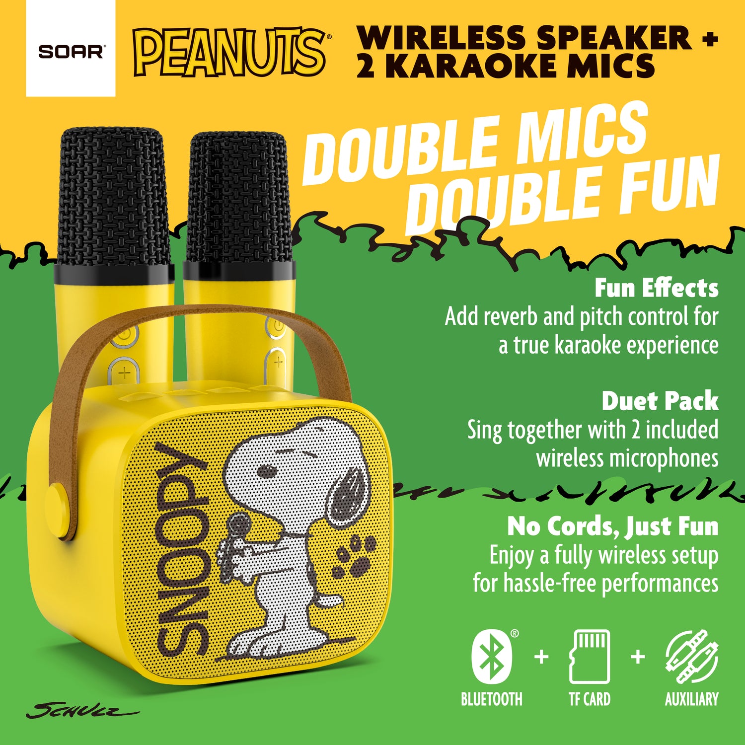 - Wireless karaoke speaker with Peanuts fun: Bring the joy of singing to family nights and parties with this portable all-in-one system that doubles as a Bluetooth speaker for everyday music playback.