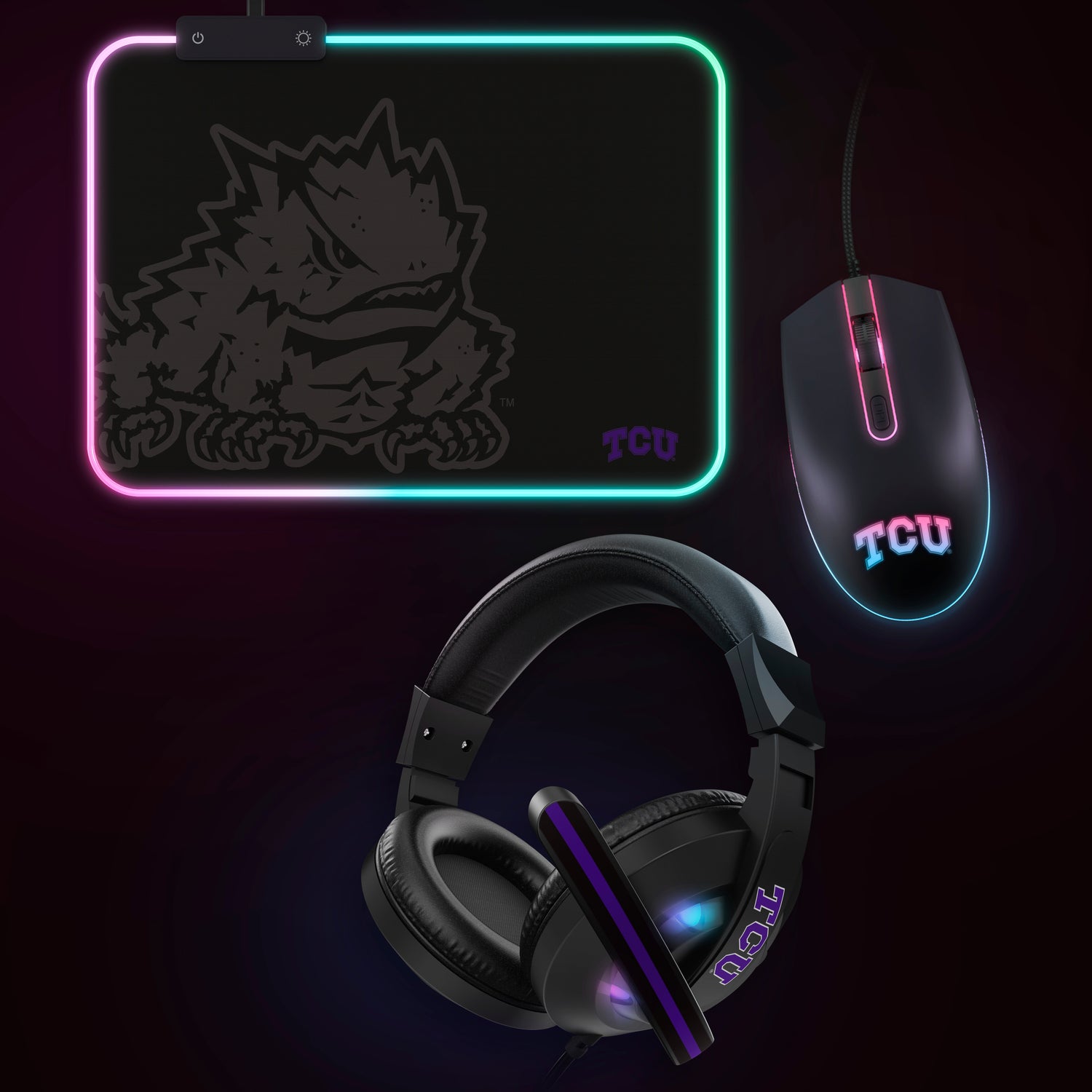 Get ready for an epic gaming experience with the NCAA Gridiron Battle Box! This exclusive combo gift pack includes a precision wired mouse, high-quality gaming headphones, and an RGB LED gaming mousepad, all designed to elevate your gameplay. Featuring Tcu Horned Frogs logo, this limited-edition set showcases your team spirit while providing top-notch gaming gear. Don’t miss out on this incredible deal—limited stock available at 50% off!