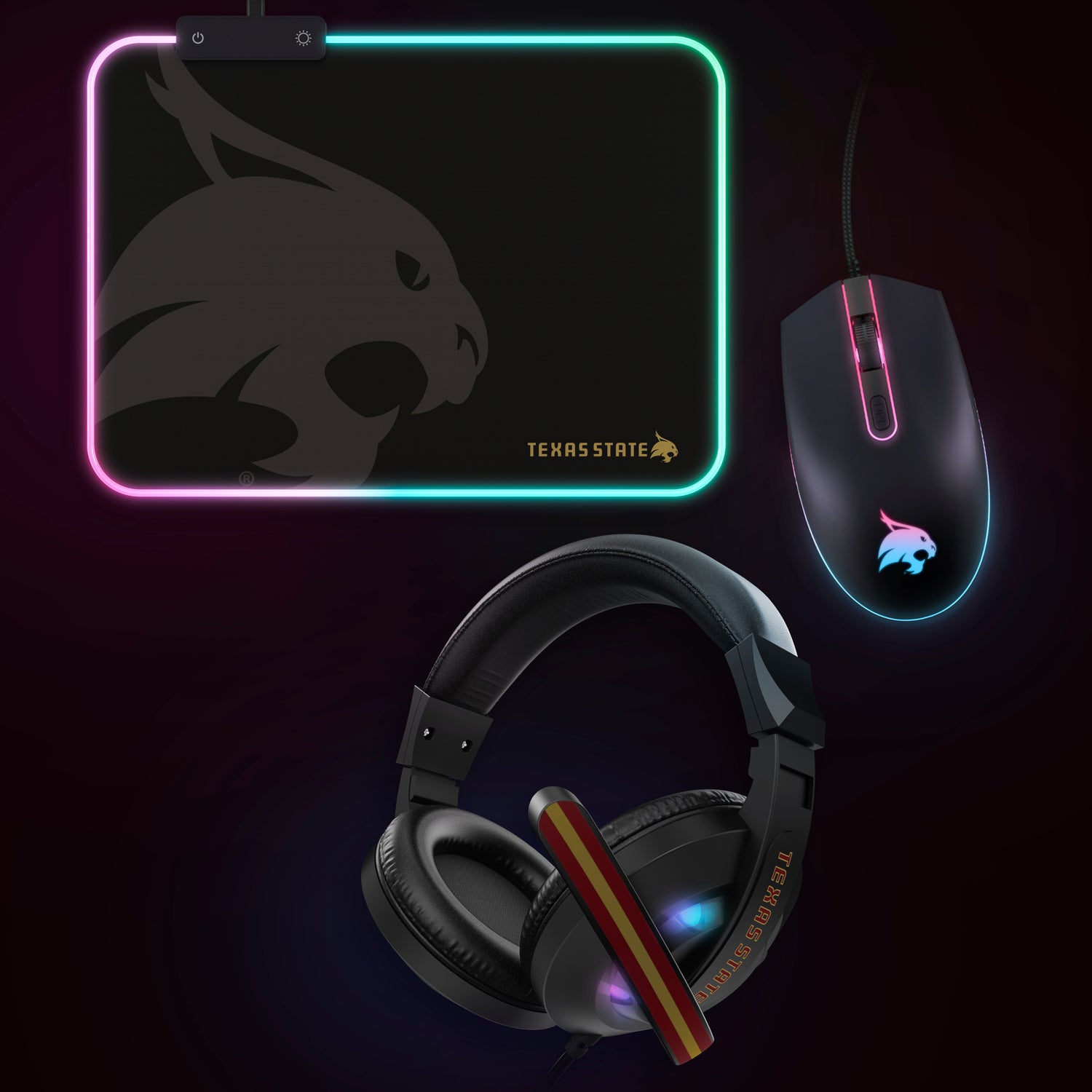 Get ready for an epic gaming experience with the NCAA Gridiron Battle Box! This exclusive combo gift pack includes a precision wired mouse, high-quality gaming headphones, and an RGB LED gaming mousepad, all designed to elevate your gameplay. Featuring Texas State Bobcats logo, this limited-edition set showcases your team spirit while providing top-notch gaming gear. Don’t miss out on this incredible deal—limited stock available at 50% off!