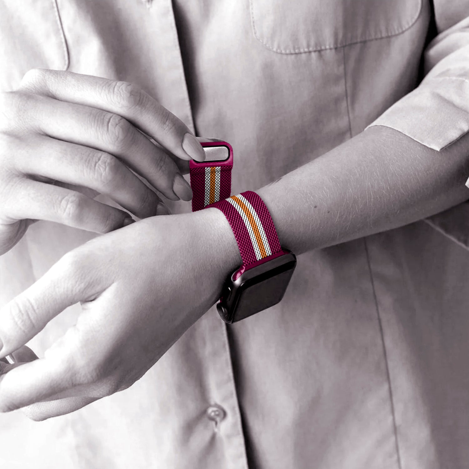 Support your team in style with the NCAA Striped Metallic Watch Band (42mm), featuring your Virginia Tech Hokies logo. Designed with a durable stainless steel band, it offers a secure magnetic closure and a sleek striped look. Compatible with Apple Watches, its adjustable one-size-fits-most design ensures maximum comfort. Perfect for everyday wear or game-day vibes!