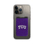 Alternative to a bulky wallet or purse, this phone card pocket holds all you need --credit card, cash, earphones in one place. Grab it and you're ready to go. Lycra material is stretchy and flexible holding all the items perfectly. 3M adhesive backing stays firm and durable on the phone, while no sticky residue will be left behind when removed. Sleek design features your favorite sports team logo and makes your life easier and more enjoyable. Collegiate Officially Licensed product