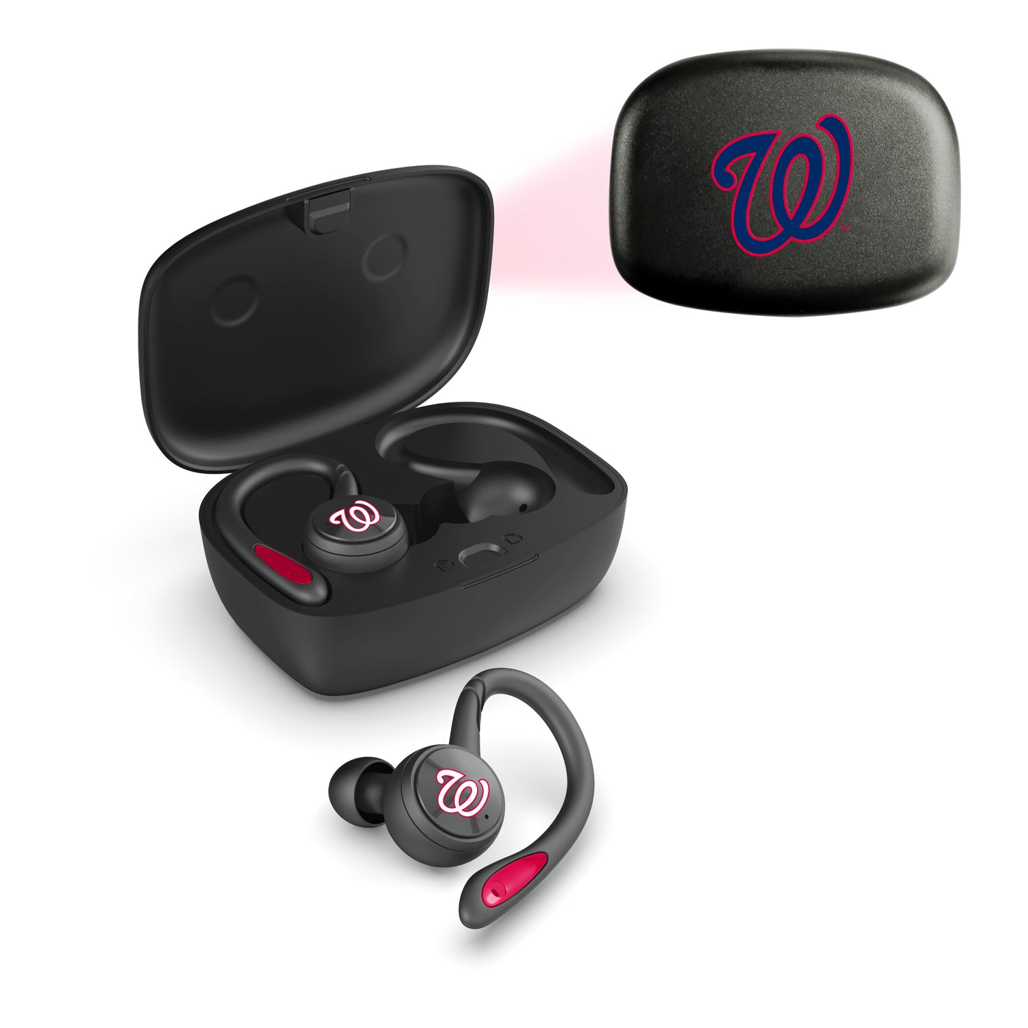 Stay active and show your team pride with MLB Sport True Wireless Earbuds featuring Washington Nationals logo! These lightweight earbuds deliver premium stereo sound with Bluetooth 5.0 technology, offering a 30 ft. range for seamless connectivity to all Bluetooth-enabled devices. Enjoy over 10 hours of music and talk time per charge, and recharge easily with the portable charging case. Designed for an active lifestyle, they feature secure-fit ear hooks and extra ear gels for a comfortable and snug fit. Perfect for workouts, travel, or everyday use!