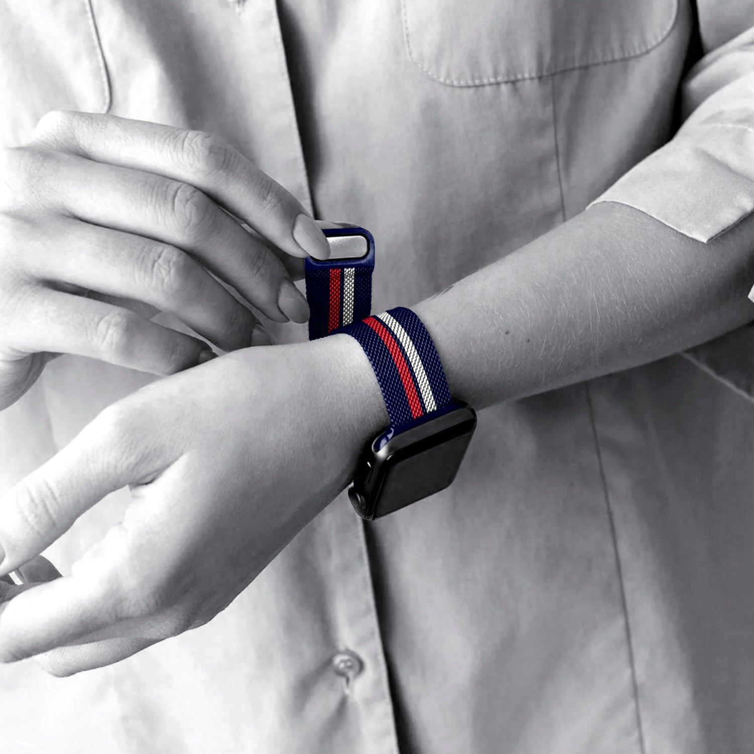 Support your team in style with the NCAA Striped Metallic Watch Band (38mm), featuring your Gonzaga Bulldogs logo. Designed with a durable stainless steel band, it offers a secure magnetic closure and a sleek striped look. Compatible with Apple Watches, its adjustable one-size-fits-most design ensures maximum comfort. Perfect for everyday wear or game-day vibes!