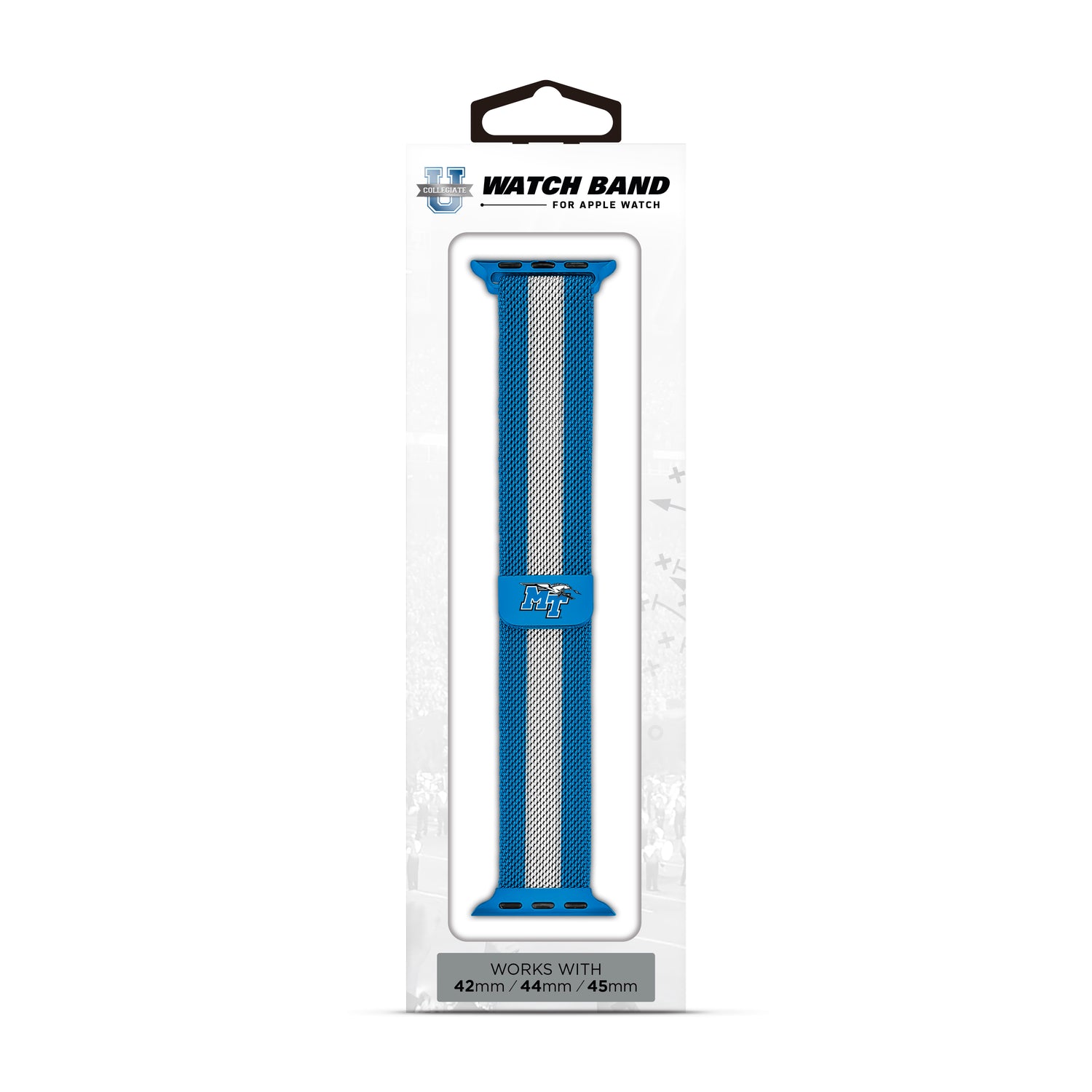 Middle Tennessee State University? NCAA Striped Metallic Watch Band (42mm)