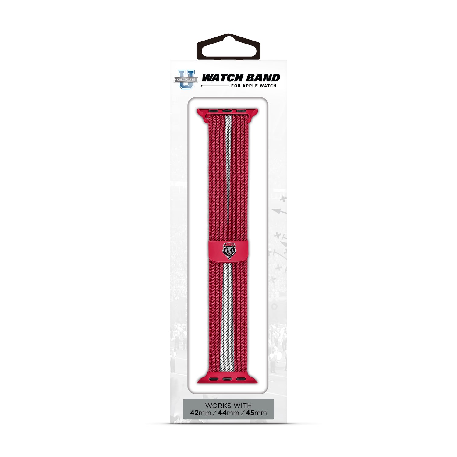 Support your team in style with the NCAA Striped Metallic Watch Band (42mm), featuring your New Mexico Lobos logo. Designed with a durable stainless steel band, it offers a secure magnetic closure and a sleek striped look. Compatible with Apple Watches, its adjustable one-size-fits-most design ensures maximum comfort. Perfect for everyday wear or game-day vibes!