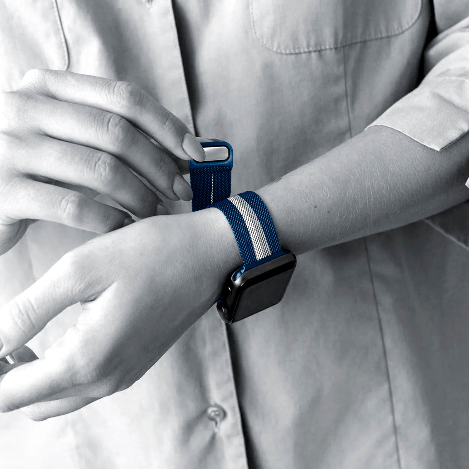 Support your team in style with the NFL Striped Metallic Watch Band (42mm), featuring Tennessee Titans logo. Designed with a durable stainless steel band, it offers a secure magnetic closure and a sleek striped look. Compatible with Apple Watches, its adjustable one-size-fits-most design ensures maximum comfort. Perfect for everyday wear or game-day vibes!