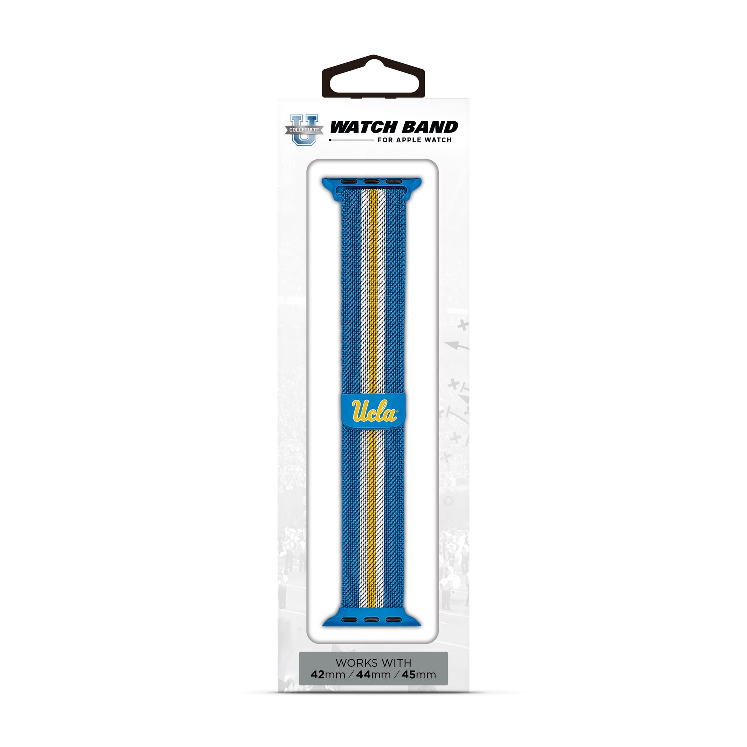 Support your team in style with the NCAA Striped Metallic Watch Band (42mm), featuring your UCLA Bruins logo. Designed with a durable stainless steel band, it offers a secure magnetic closure and a sleek striped look. Compatible with Apple Watches, its adjustable one-size-fits-most design ensures maximum comfort. Perfect for everyday wear or game-day vibes!