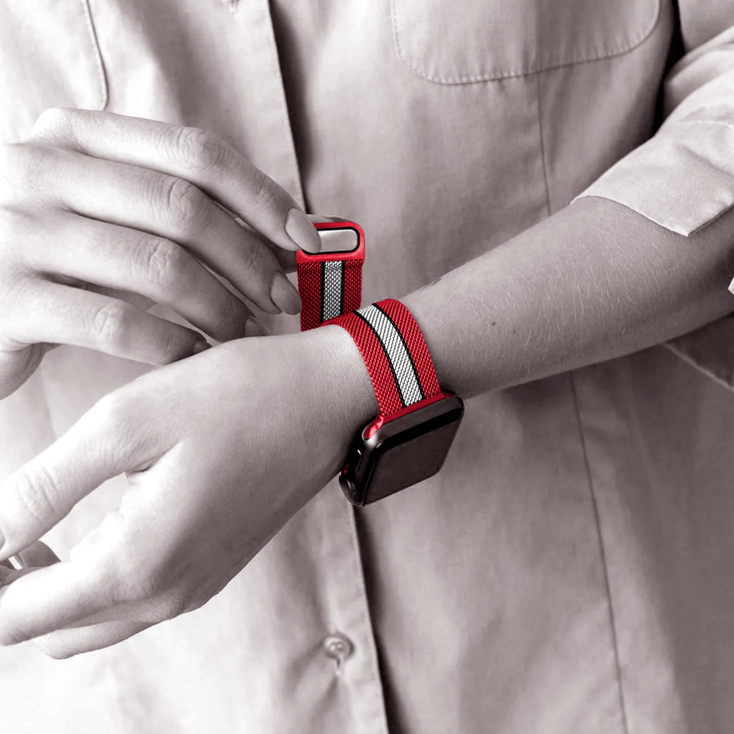 Support your team in style with the NCAA Striped Metallic Watch Band (38mm), featuring your Western Kentucky Hilltoppers logo. Designed with a durable stainless steel band, it offers a secure magnetic closure and a sleek striped look. Compatible with Apple Watches, its adjustable one-size-fits-most design ensures maximum comfort. Perfect for everyday wear or game-day vibes!