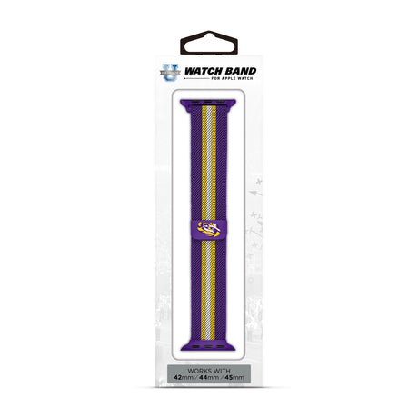 LSU Tigers NCAA Striped Metallic Watch Band (42mm)