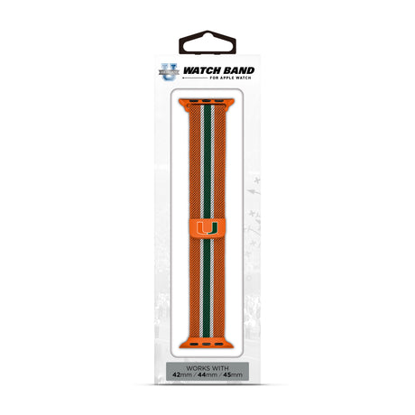Miami Hurricanes NCAA Striped Metallic Watch Band (42mm)