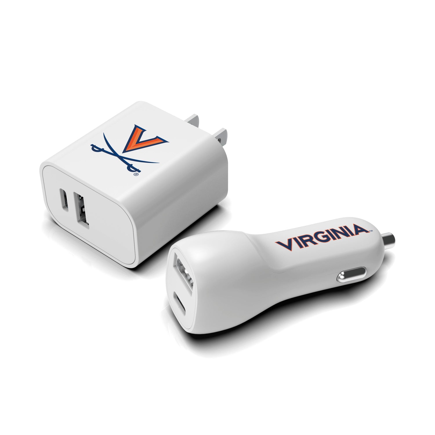Stay powered on the go with the NCAA Dual USB & Type-C Charger Combo, featuring Virginia Cavaliers logo. This versatile pack includes both a car charger and a wall charger, offering rapid 2.1 Amp charging for your devices. Designed with overcharge protection, it ensures safe and efficient charging every time. Perfect for home, office, or travel use.