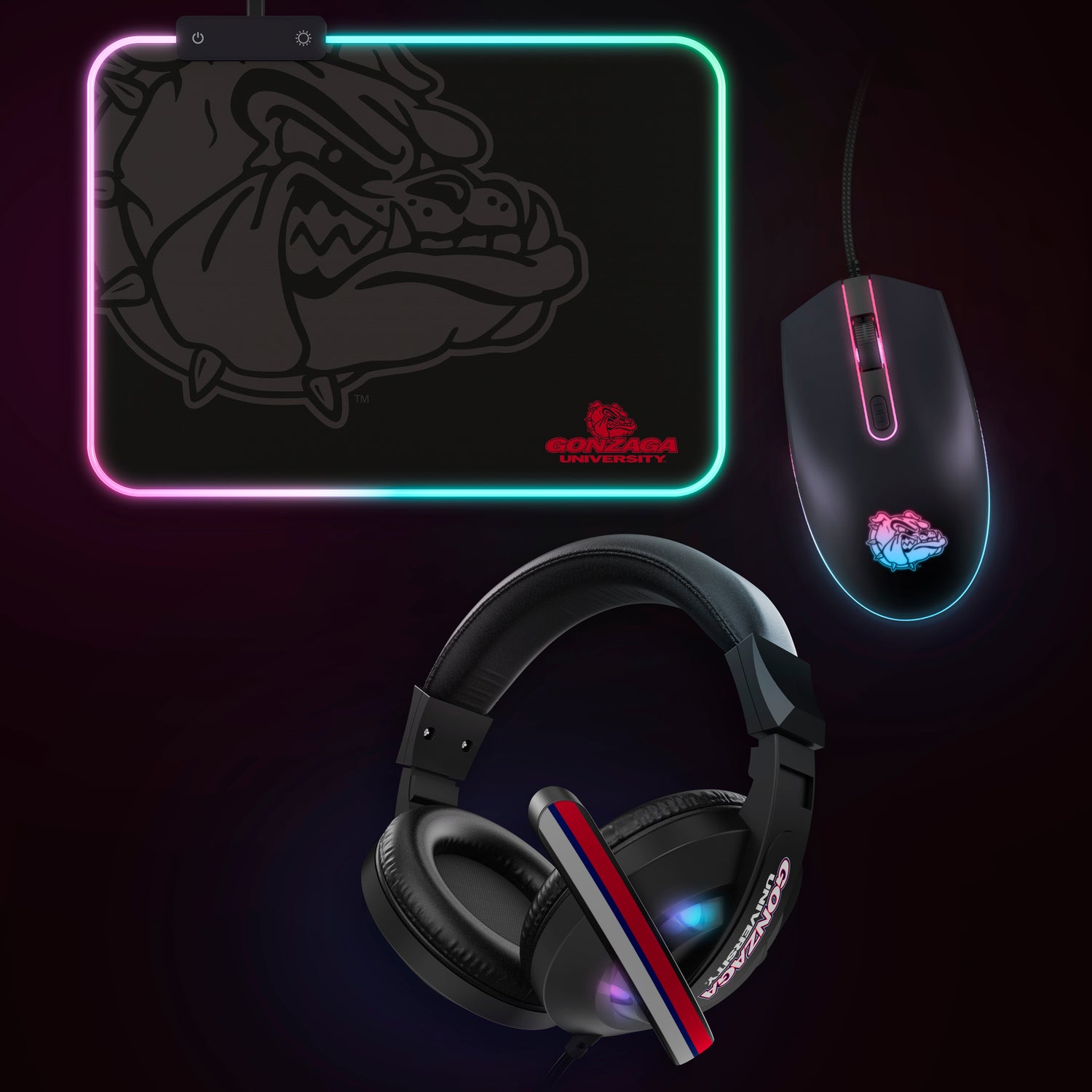 Get ready for an epic gaming experience with the NCAA Gridiron Battle Box! This exclusive combo gift pack includes a precision wired mouse, high-quality gaming headphones, and an RGB LED gaming mousepad, all designed to elevate your gameplay. Featuring Gonzaga Bulldogs logo, this limited-edition set showcases your team spirit while providing top-notch gaming gear. Don’t miss out on this incredible deal—limited stock available at 50% off!